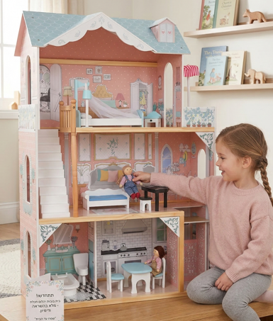 בית בובות ענק מעץ "יהלום תכלת" - עולם קסום של דמיון ומשחק!