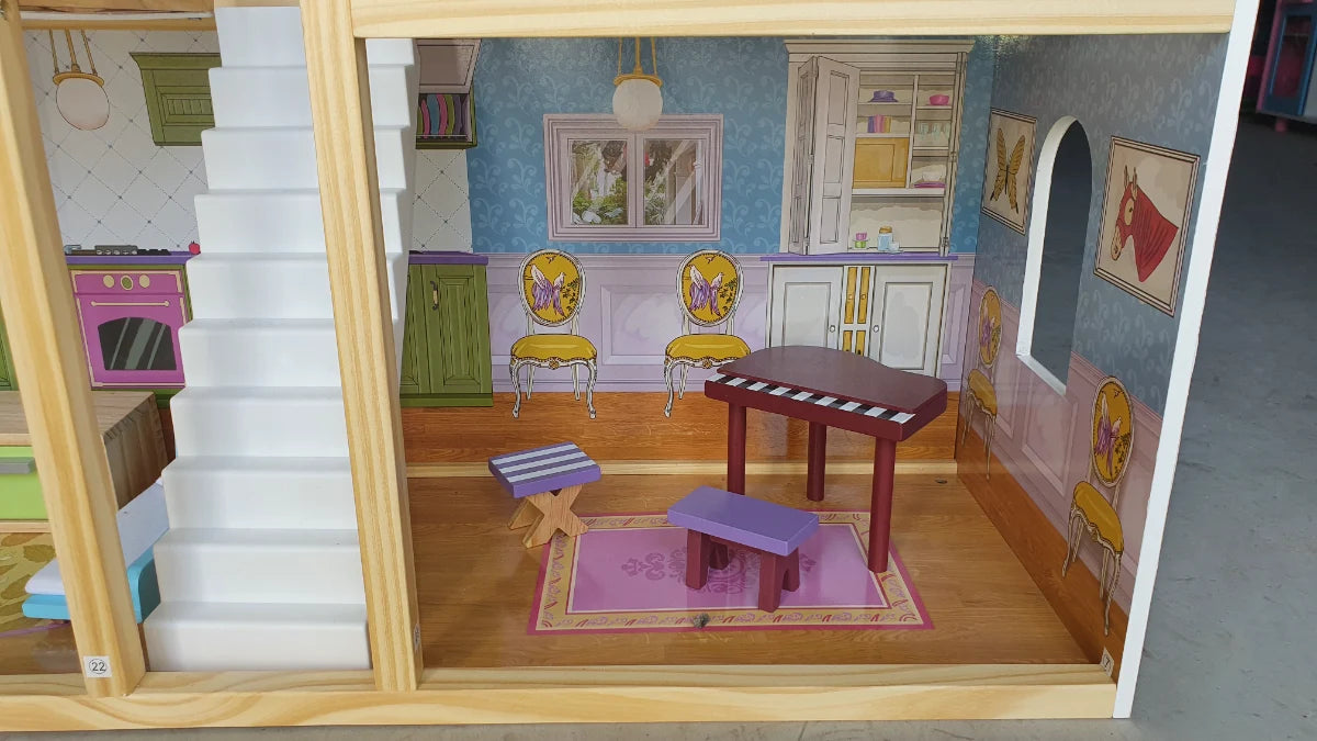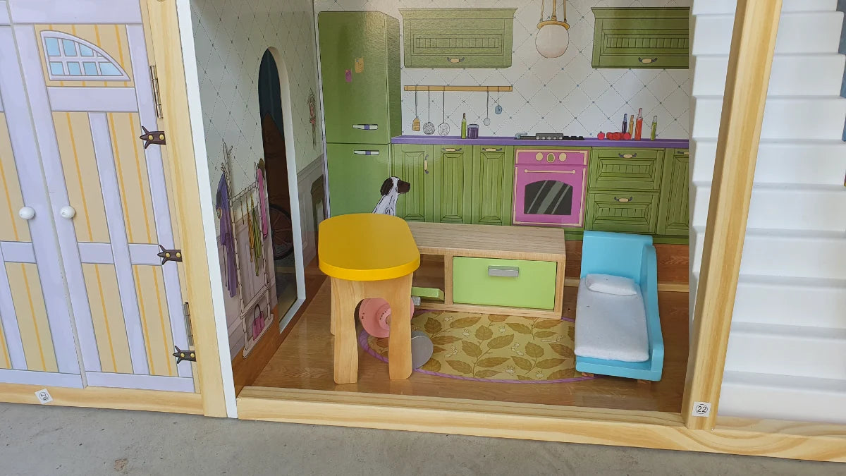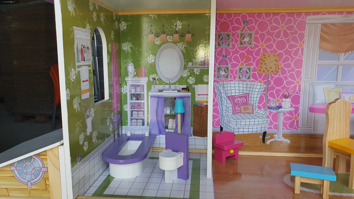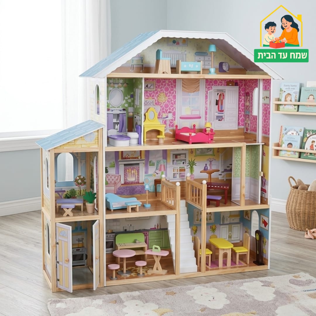 בית בובות מעץ איכותי, ססגוני, מעוצב ועשיר בריהוט ואביזרים מדליקים!