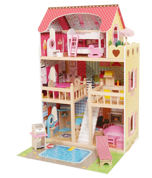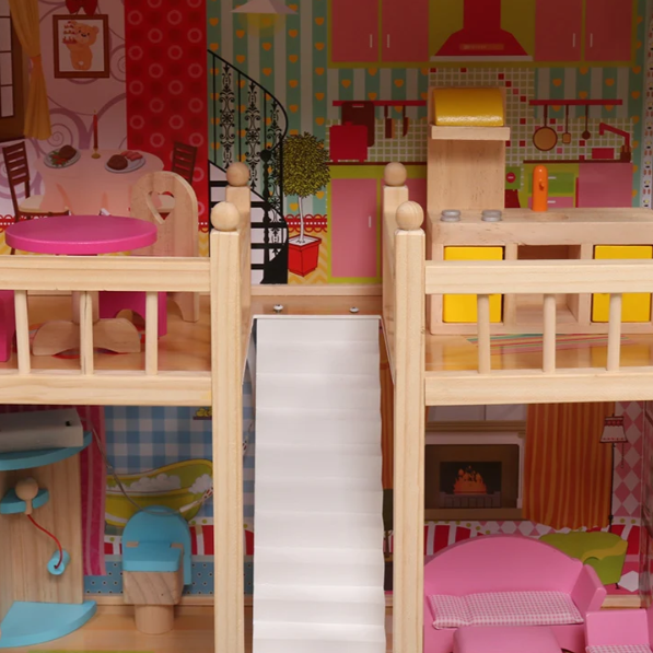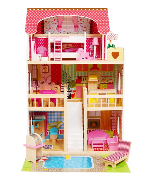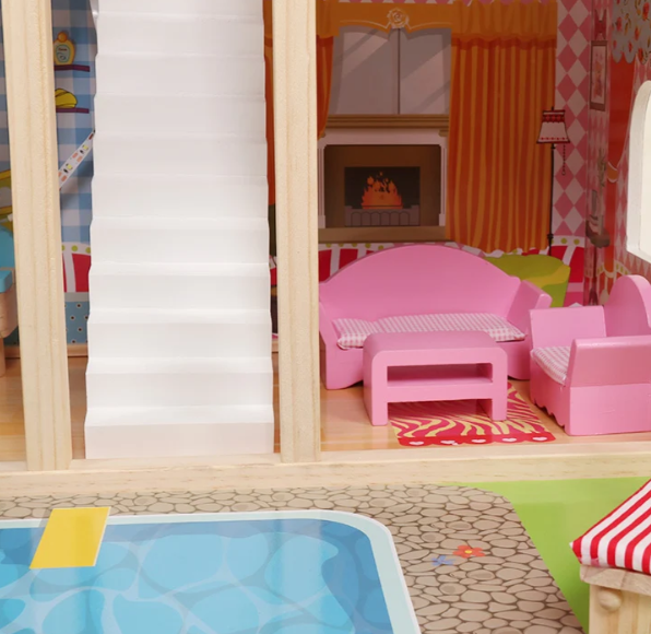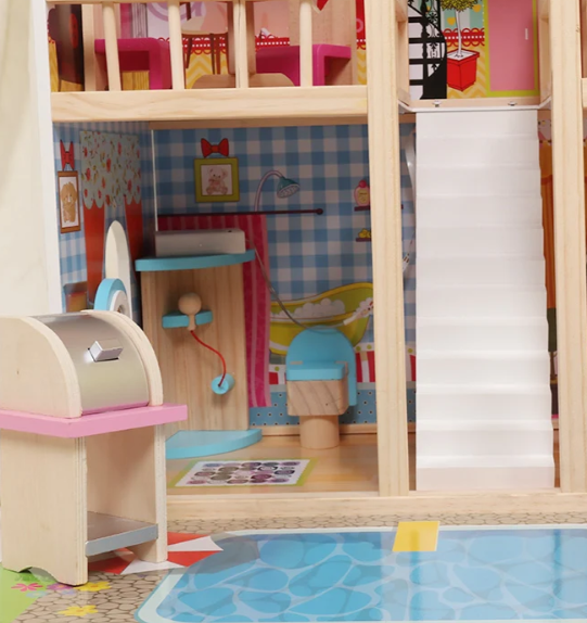 בית בובות מעץ איכותי, ססגוני מעוצב ועשיר בריהוט ואביזרים מדליקים!