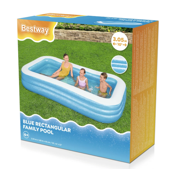 בריכה מתנפחת לילדים ולמשפחה מלבנית כחולה (305X183X46 ס"מ) 54009 מבית Bestway