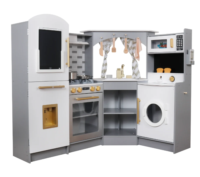 מטבח אדר פינתי מעץ לילדים בצבע אפור W10C933C