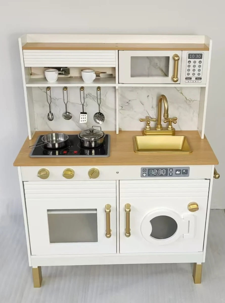 מטבח אלקטרוני דאלאס מעץ לילדים – לבן