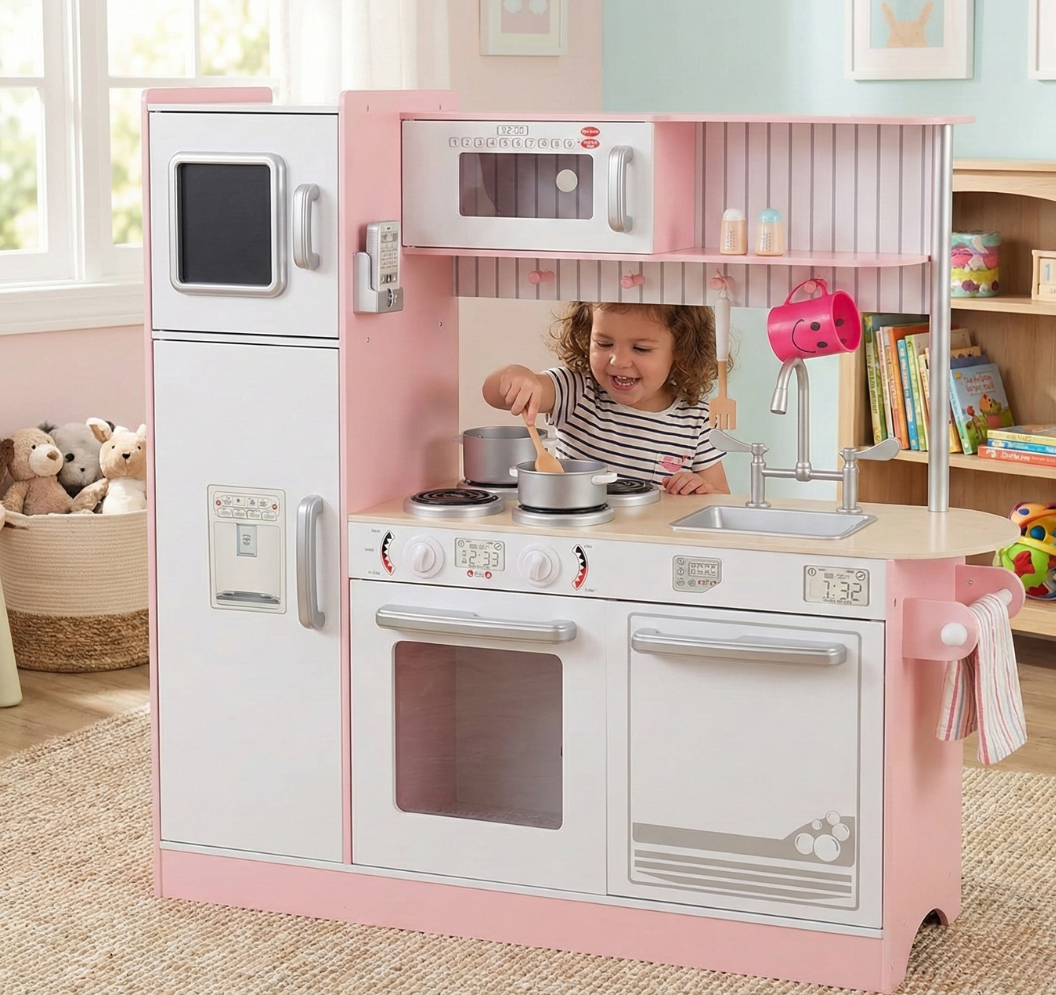 מטבח רעות - מטבח עץ מעוצב עם סט אביזרים משלים למשחק דמיון