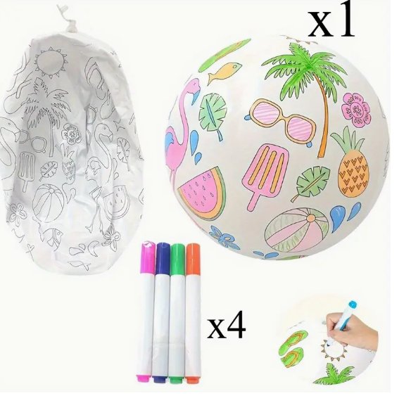 כדור חוף מתנפח עם הדפסים לצביעה -פעילות כיפית לילדים בחוף, בבריכה או בבית.