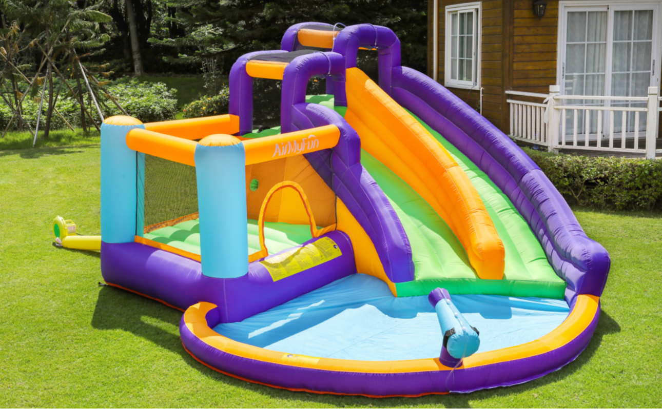 תכירו את המתקן המתנפח הרטוב הענק בצבע סגול מבית DOCTOR DOLPHIN – גן משחקים שלם שיגרום לילדים לרוץ בגינה כל היום!
