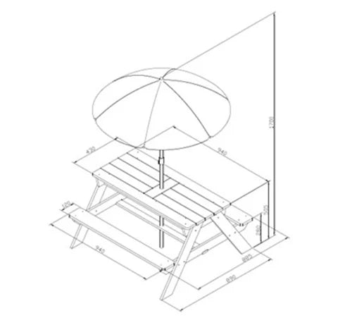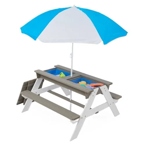 שולחן פיקניק מעץ לילדים עם שימשייה ותאי פעילות דגם פליי TB2401