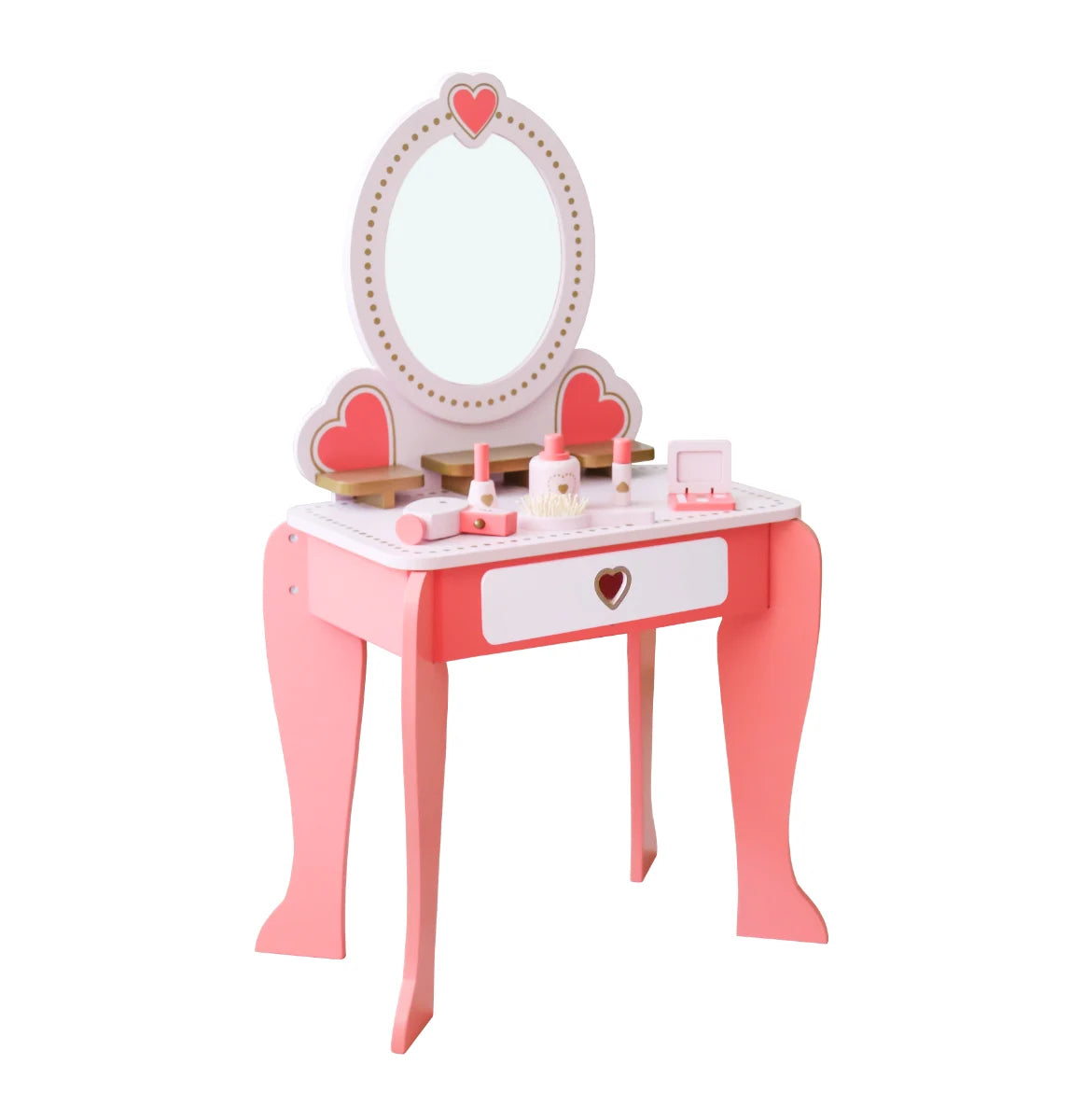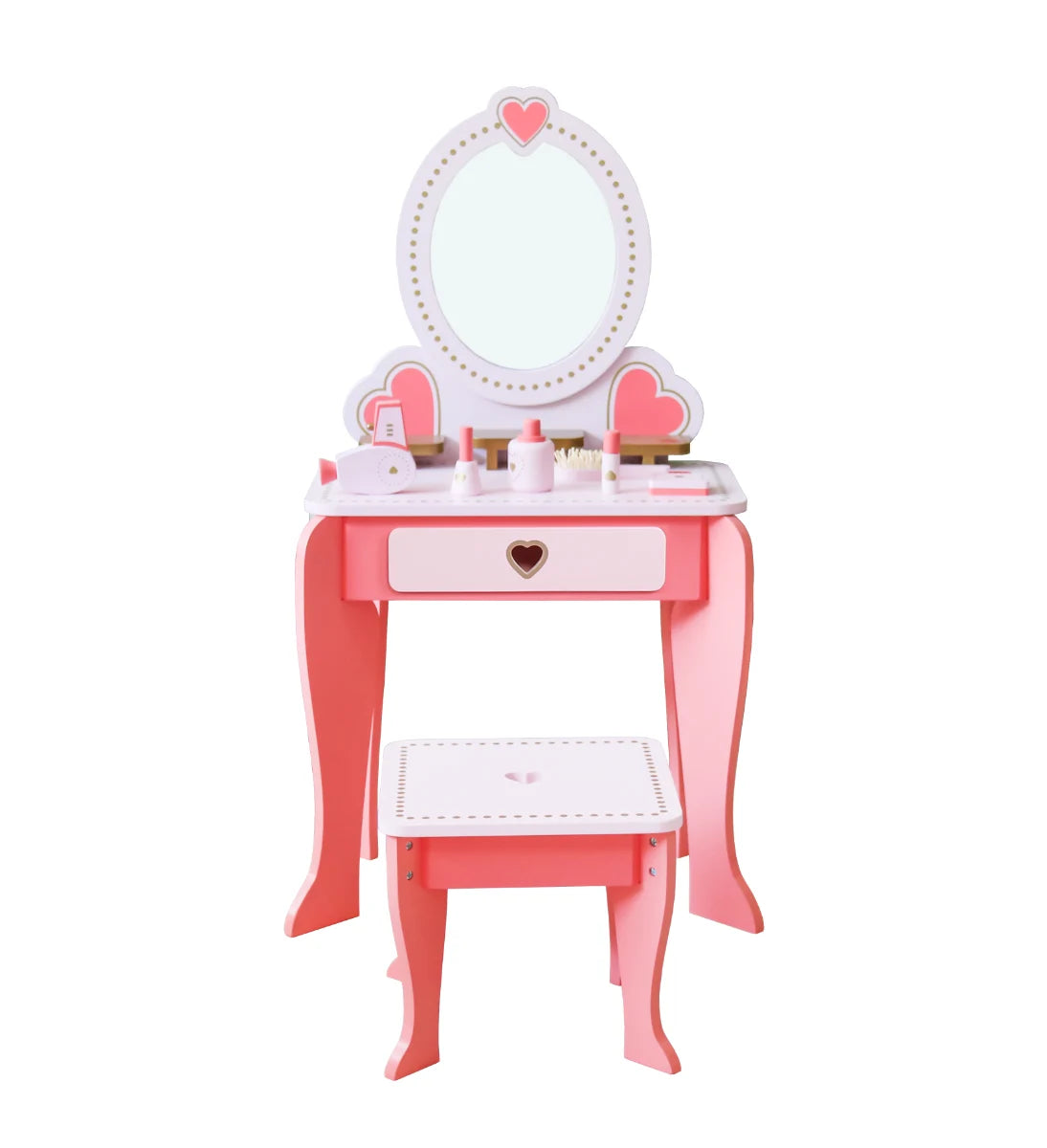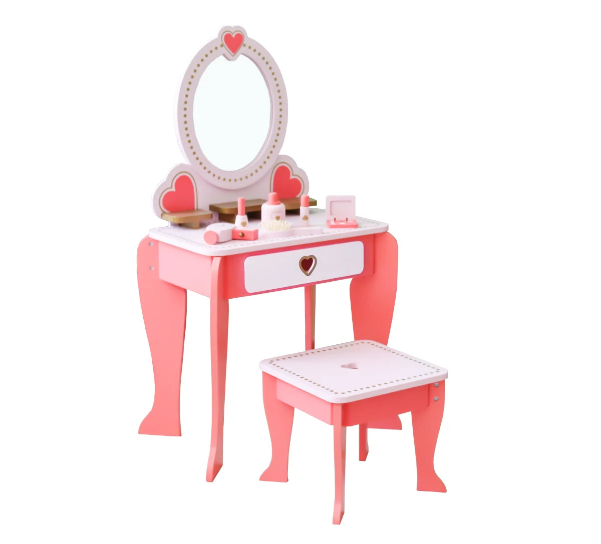 עשויה מעץ איכותי ועמיד, השידה מגיעה עם מראה, מגירות אחסון, מדפים פתוחים וכיסא תואם. העיצוב הססגוני והמלא יאפשר שעות של משחק דימיוני, יחזק את תחושת העצמאות והמסוגלות של הילדה.