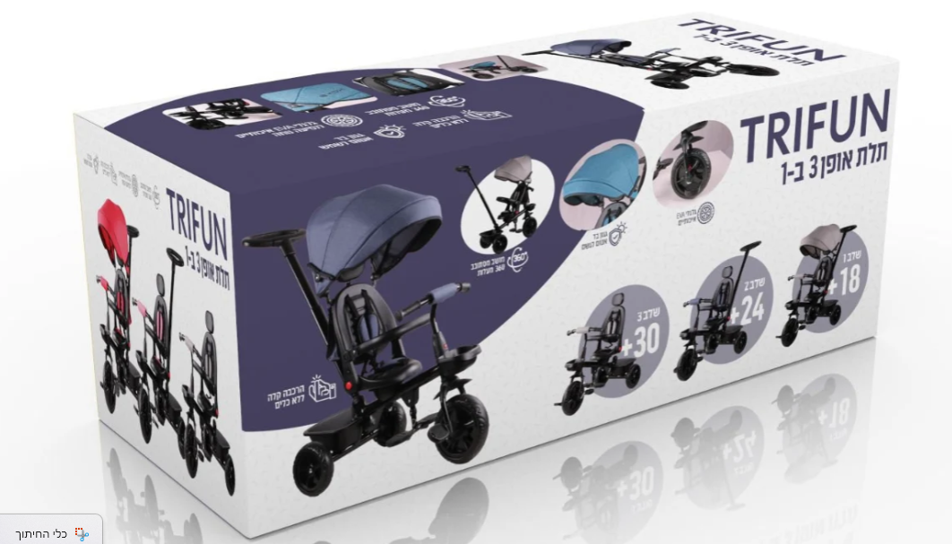 תלת אופן עם מושב דו-כיווני בצבע אדום 3 ב-1| מקט TRIFUN | TRIFUNR| שמח עד הבית