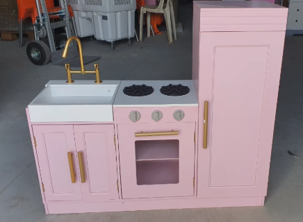 - שם הדגם -מטבח עץ לילדים ורוד-פלורה- בית העץ