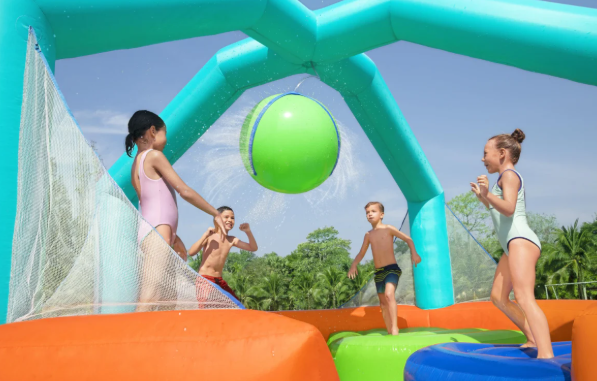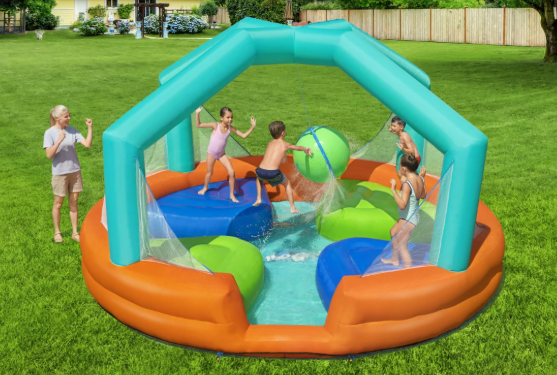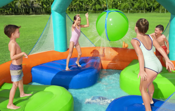 מתקן קפיצה מתנפח עם מים גדול | 53383 | פארק מים הכדור החמקמק | Bestway | .משטחי קפיצה + כדור + בריכה