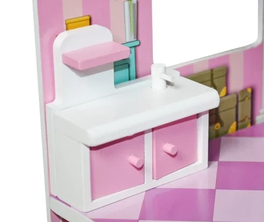 W06A139 - בית בובות טלי לילדים שלוש קומות, בצבעים בהירים כולל ריהוט לבית, בית העץ